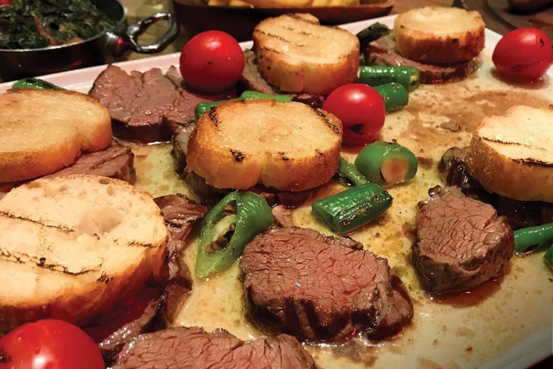 4 kişilik dana lokum eti közlenmiş domates közlenmiş biberkızarmış ekmektereyağı ile